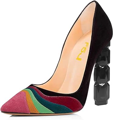 FSJ Women Jeweled High Heel Pointed Toe Pump Slip On Sparkling Crystal Bead Heel Sexy Ladies Party Bridal Shoes Size 4-15 US